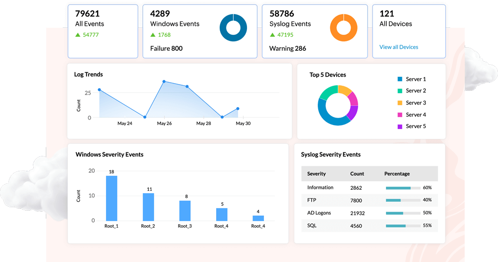 Log360 không chỉ có khả năng thu thập log từ tất cả các thiết bị mạng truyền thống mà còn xử lý linh hoạt các điểm cuối kết nối qua VPN, đảm bảo một quy trình thu thập log liên tục, đáng tin cậy và tập trung hoàn toàn.