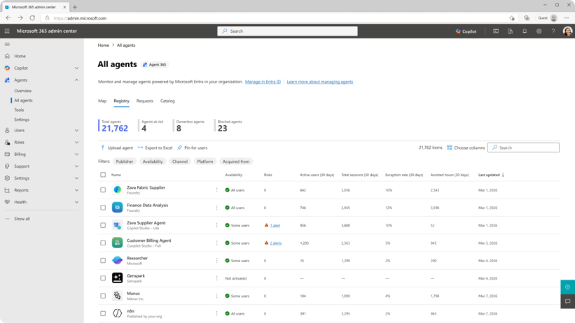 Dù AI Agent được xây dựng từ Microsoft Copilot Studio, Azure AI Foundry hay từ các đối tác thứ ba (như n8n, CrewAI, OpenAI), tất cả đều có thể được quản lý tại một nơi duy nhất: Microsoft 365 Admin Center.